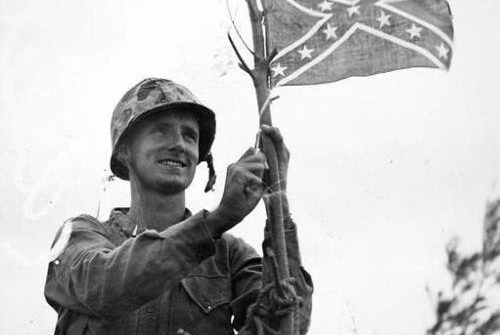 Five days ago I posted an article citing Eugene Sledge’s With the Old Breed that stated the first American flag to fly over the conquered Japanese fortress at Shuri Castle during the World … Continue reading Okinawa Confederate Flag
